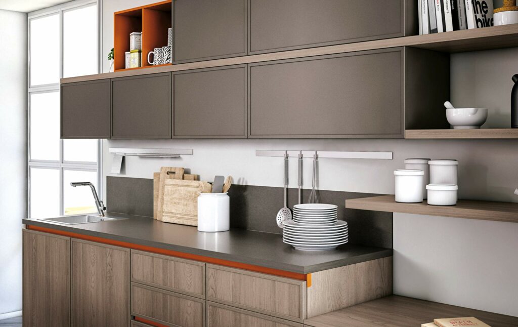 Non solo una cucina moderna, un vero e proprio sistema di finiture, ispirata alle linee degli anni ’80, un ritorno al passato ma rivisitato con elementi ed accessori funzionali che soddisfano le esigenze del vivere contemporaneo. Ricca di personalizzazioni ed unica nel suo genere, tutto sembra familiare ed intimo ma allo stesso tempo diverso dallo stereotipo, personale, tuo!